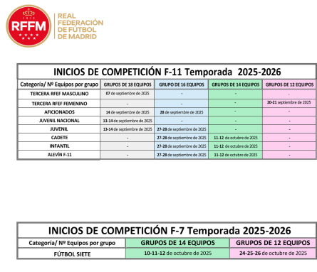 En cuanto a Fútbol 11, nuestro Cadete B estará en el grupo 26, el infantil B en el grupo 35, el infantil C en el grupo 22 y finalmente el Alevín B en el grupo 12.